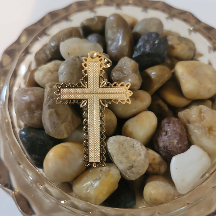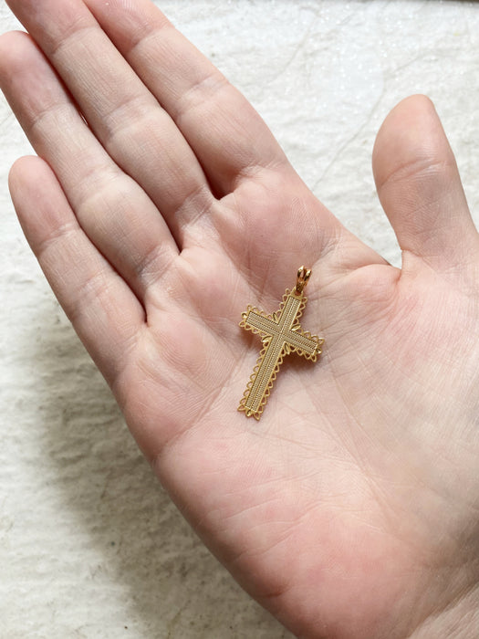 Intricate Cutout Gold Cross Pendant