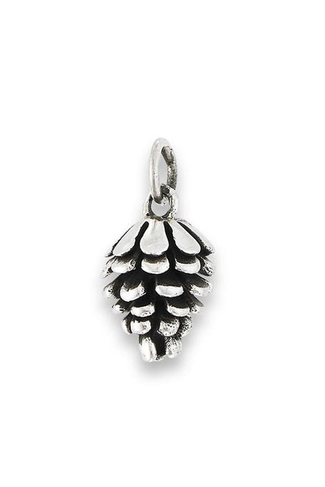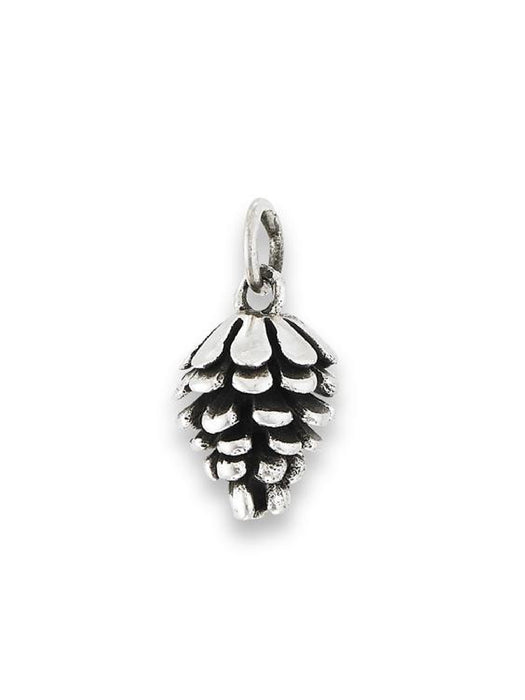 Three-dimensional pine cone pendant features beautiful detail worked in sterling silver, with oxidized silver for dimension.