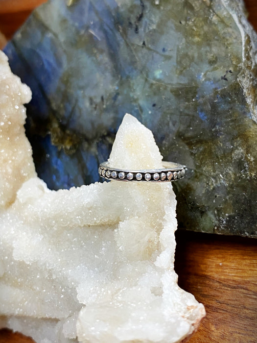 Perfect stacking band is encircled with dots. Pair with one of our many rings or wear on its own for perfect minimalist style.