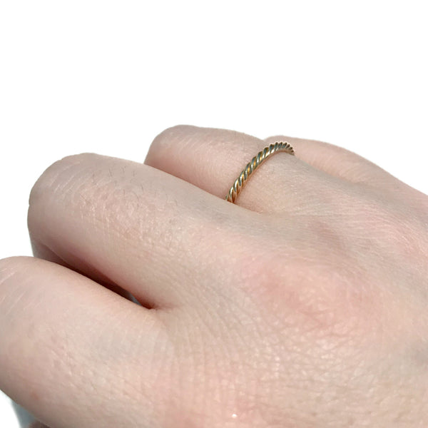 Original price $ 20.00 - Original price $ 20.00Original price$ 20.00$ 20.00 - $ 20.00Current price $ 20.00| /This classic 14kt gold filled ring is a thick rounded twisted band. Available in whole sizes 4-11. Band is 1/16" wide. Handmade in the USA!