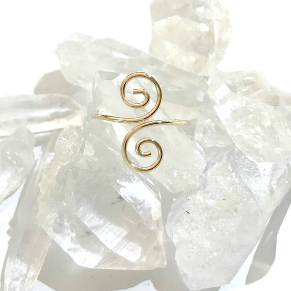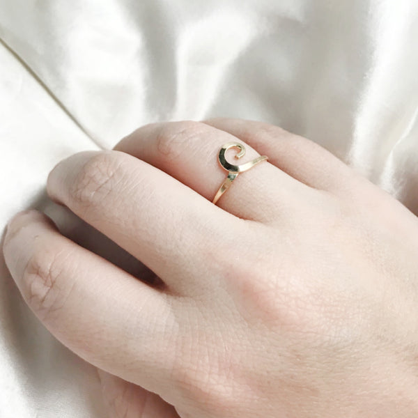 Original price $ 21.00 - Original price $ 21.00Original price$ 21.00$ 21.00 - $ 21.00Current price $ 21.00| /This gold filled ring has one curling spiral with a lightly hammered finish on a solid band. Available in whole sizes 5-10. Handmade in the USA! Ap...