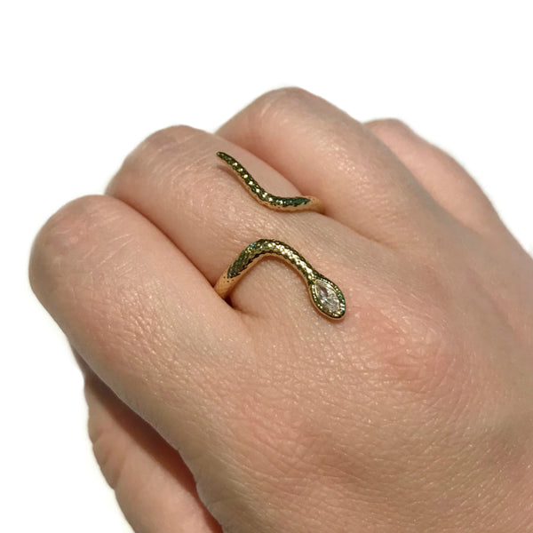 Original price $ 20.00 - Original price $ 20.00Original price$ 20.00$ 20.00 - $ 20.00Current price $ 20.00| /An ancient symbol of infinity, the ouroboros is a snake eating its tail. This band ring is a beautifully detailed snake set with clear cubic zircon...