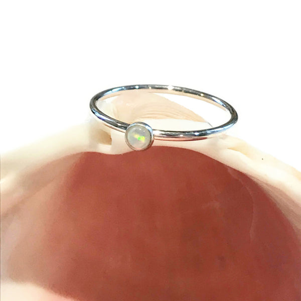 Original price $ 24.00 - Original price $ 24.00Original price$ 24.00$ 24.00 - $ 24.00Current price $ 24.00| /This dainty ring is a dome of white opal bezel-set into a handcrafted sterling silver. Perfect for stacking! Whole sizes 5-11 available. Handmade i...
