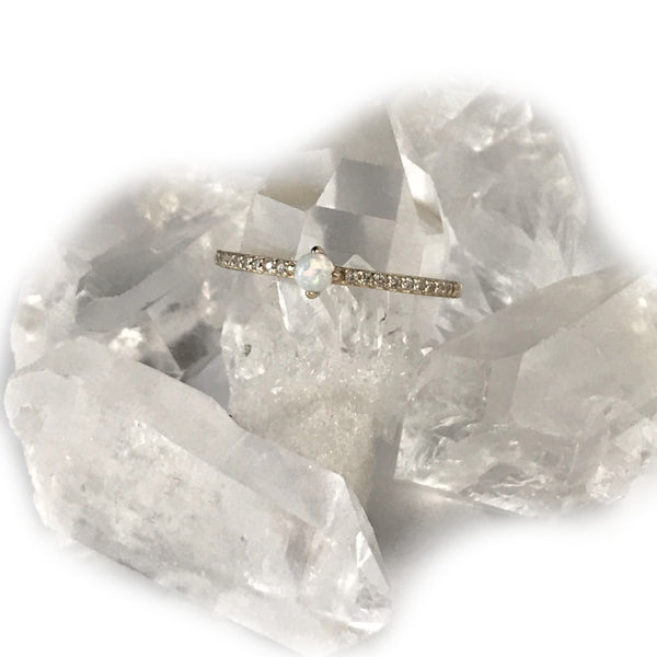 Original price $ 25.00 - Original price $ 25.00Original price$ 25.00$ 25.00 - $ 25.00Current price $ 25.00| /This dainty ring is a dome of white opal bezel-set into a handcrafted 14kt gold filled band. Perfect for stacking! Whole sizes 5-11 available. Hand...