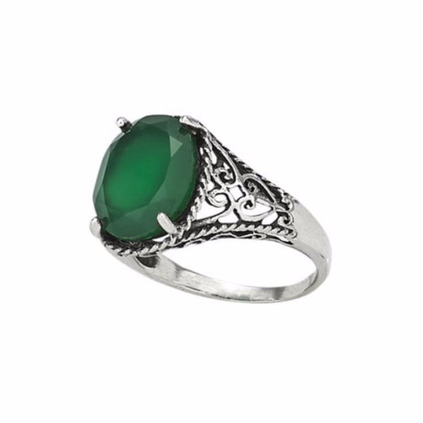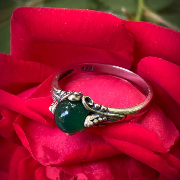Original price $ 29.00 - Original price $ 29.00Original price$ 29.00$ 29.00 - $ 29.00Current price $ 29.00| /This ring features an orb of polished green onyx in a decorative raised setting, with the gem surrounded by ornate silver details. Available in who...
