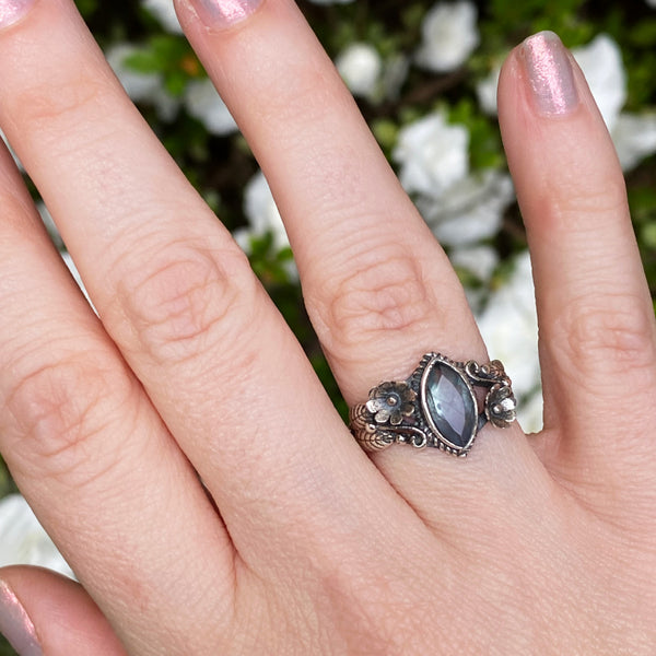 Original price $ 32.00 - Original price $ 32.00Original price$ 32.00$ 32.00 - $ 32.00Current price $ 32.00| /This sweet & simple ring is a star set with shimmering labradorite, the stone of dreams & magic. The rounded band is sterling silver. Avail...