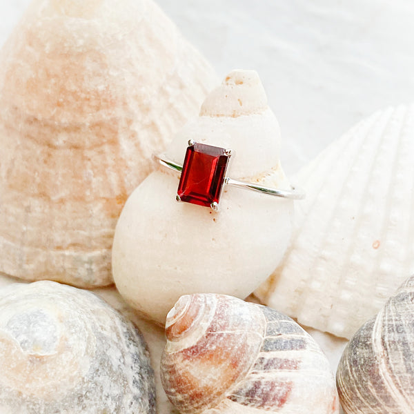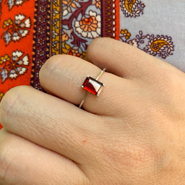 Original price $ 24.00 - Original price $ 24.00Original price$ 24.00$ 24.00 - $ 24.00Current price $ 24.00| /This mystical ring features a coffin-cut garnet gemstone, encased in sterling silver and set on a simple band. Garnet is a classic gemstone represe...