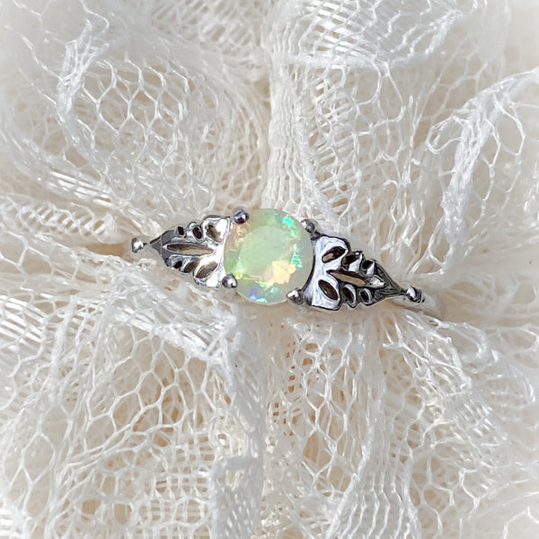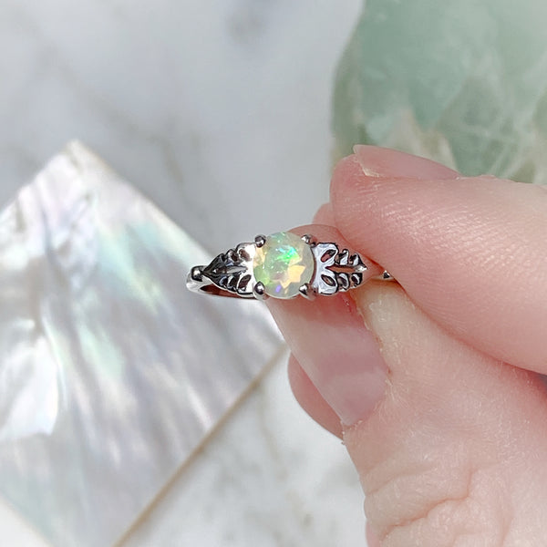 Original price $ 34.00 - Original price $ 34.00Original price$ 34.00$ 34.00 - $ 34.00Current price $ 34.00| /Ethiopian opal is a natural opal known for it's translucence and gorgeous rainbow light play. This elegant ring features a milky round Ethiopian op...