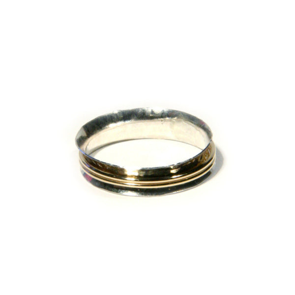 Original price $ 20.00 - Original price $ 20.00Original price$ 20.00$ 20.00 - $ 20.00Current price $ 20.00| /This sterling silver ring has a twist in the middle and a thin band of gold filled highlight. Available in whole sizes 4-11. Handmade in the USA! 1...