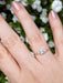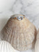 This elegant handmade ring has an oval cut blue topaz gemstone flanked by two small round golden citrine stones and set in a toothed crown style setting.