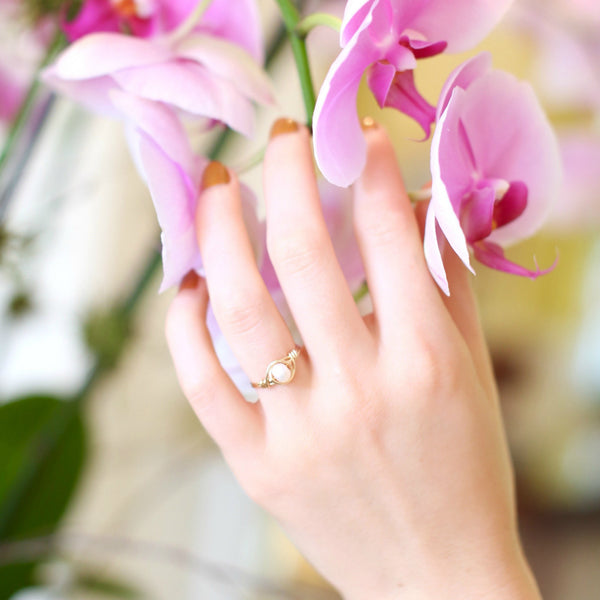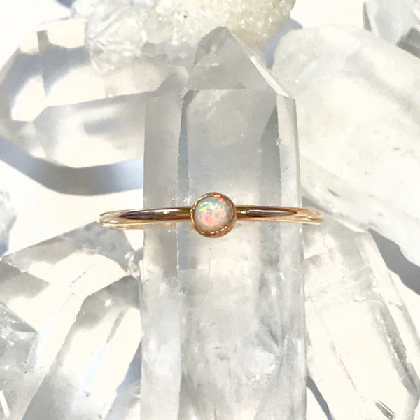 Original price $ 25.00 - Original price $ 25.00Original price$ 25.00$ 25.00 - $ 25.00Current price $ 25.00| /This dainty ring is a dome of white opal bezel-set into a handcrafted 14kt gold filled band. Perfect for stacking! Whole sizes 5-11 available. Hand...