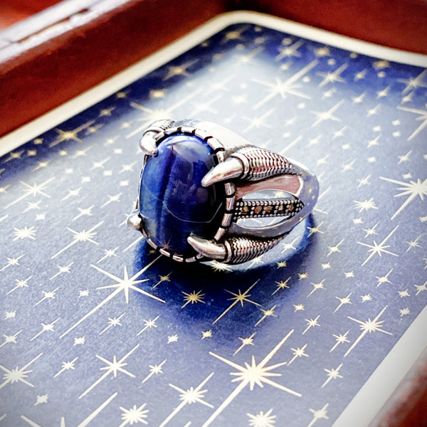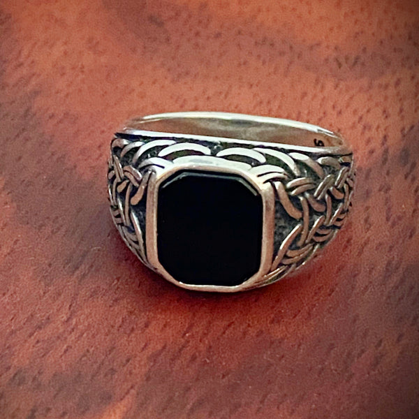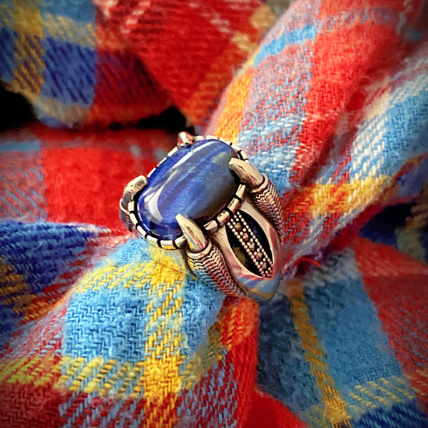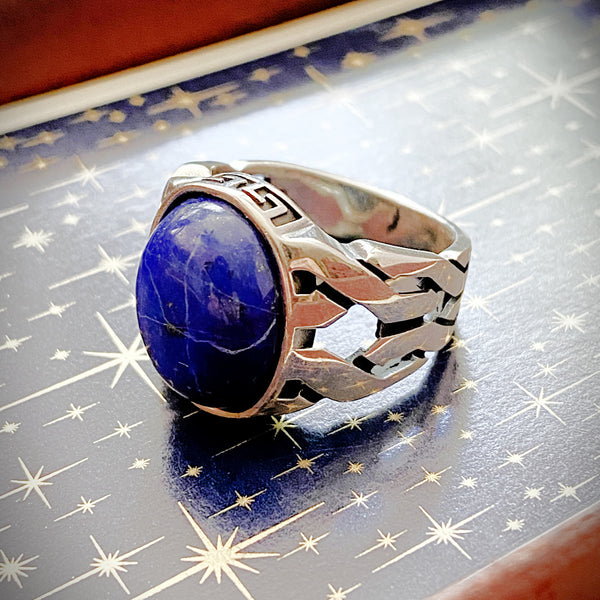 Original price $ 84.00 - Original price $ 84.00Original price$ 84.00$ 84.00 - $ 84.00Current price $ 84.00| /This sturdy signet-style ring features a braided knot band set in the center with a large blue lapis cabochon. The top and bottom of the stone sett...
