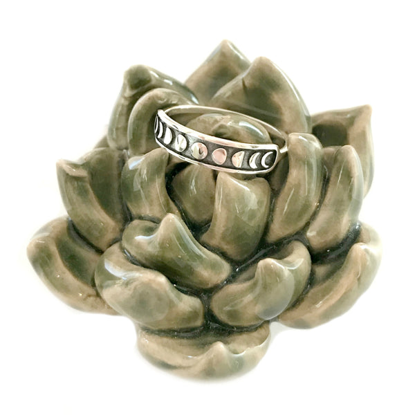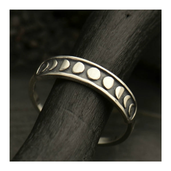Original price $ 28.00 - Original price $ 28.00Original price$ 28.00$ 28.00 - $ 28.00Current price $ 28.00| /This sterling silver band has the phases of the moon carved in relief with an oxidized silver background. Available in whole sizes 6-11. 1/8" (4mm...