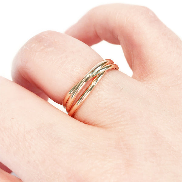 Original price $ 26.00 - Original price $ 26.00Original price$ 26.00$ 26.00 - $ 26.00Current price $ 26.00| /This handmade ring features three interlocked bands that make a wonderful "worry" or fidget ring as they roll. Available in whole sizes 4-11. 14kt...
