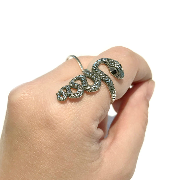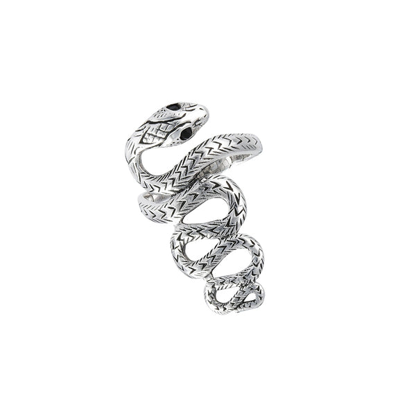 Original price $ 28.00 - Original price $ 28.00Original price$ 28.00$ 28.00 - $ 28.00Current price $ 28.00| /This powerful statement ring is a winding snake with realistic oxidized silver detail and black crystal eyes. Available in whole sizes 7-11. Sterli...