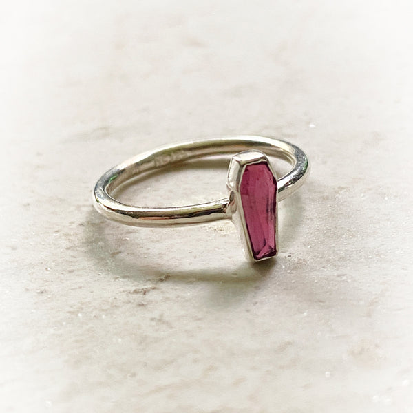 Original price $ 24.00 - Original price $ 24.00Original price$ 24.00$ 24.00 - $ 24.00Current price $ 24.00| /This mystical ring features a coffin-cut garnet gemstone, encased in sterling silver and set on a simple band. Garnet is a classic gemstone represe...