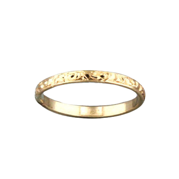 Original price $ 16.00 - Original price $ 16.00Original price$ 16.00$ 16.00 - $ 16.00Current price $ 16.00| /Dainty band with embossed swirl detail is great for stacking, or eye-catching on its own! 14kt gold filled. Available in whole sizes 2-11. Width of...