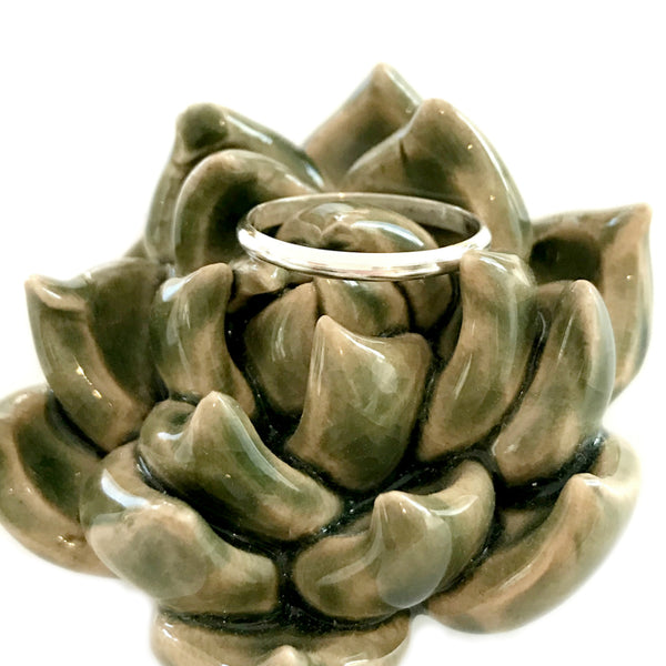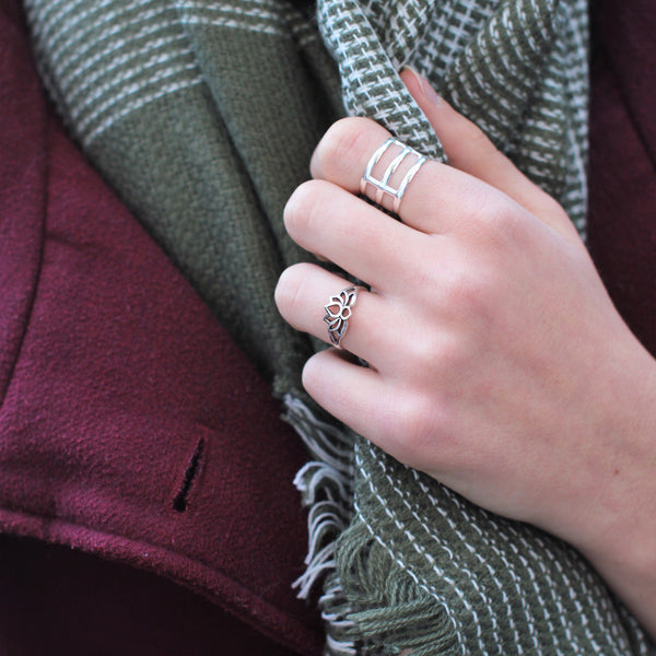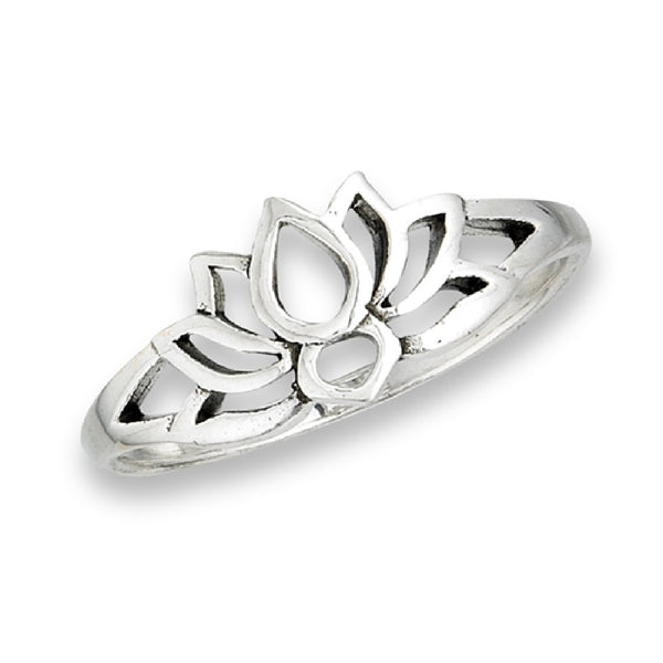Original price $ 12.50 - Original price $ 12.50Original price$ 12.50$ 12.50 - $ 12.50Current price $ 12.50| /Dainty ring with the outline of a lotus flower. Available in whole sizes 4-10. Sterling silver. Measures 3/8" at the widest point. Matching toe ri...