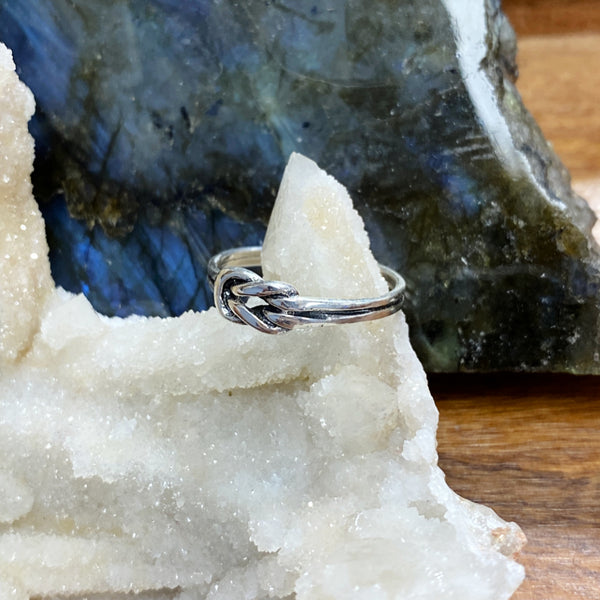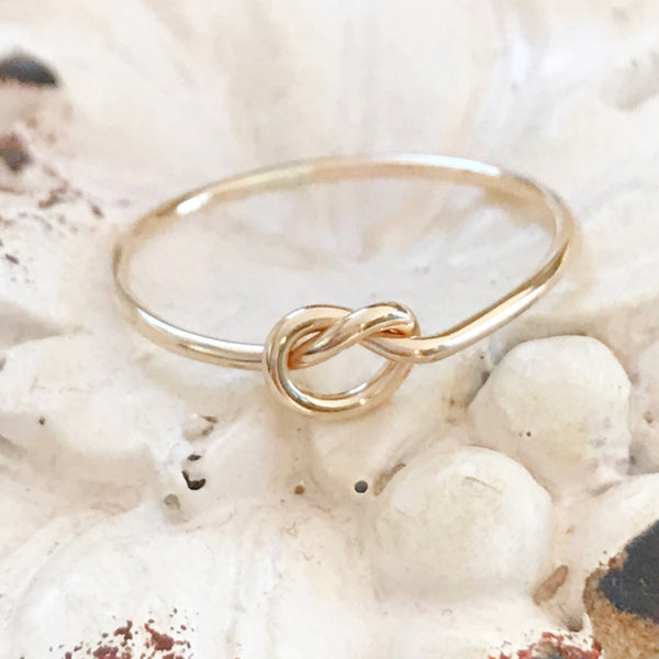 Original price $ 12.95 - Original price $ 12.95Original price$ 12.95$ 12.95 - $ 12.95Current price $ 12.95| /Classic ring is tied with a knot. Handmade in the USA! Available in whole sizes 3-11. 14kt gold filled. Knot is approx. 1/8" wide. Sterling silve...