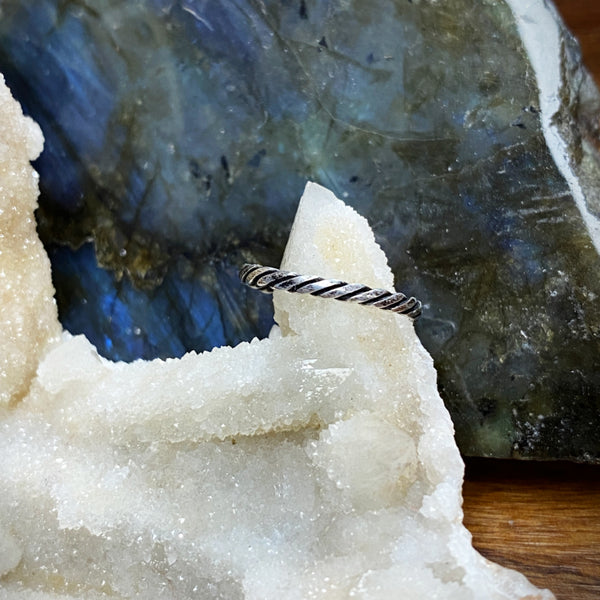 Original price $ 12.00 - Original price $ 12.00Original price$ 12.00$ 12.00 - $ 12.00Current price $ 12.00| /This simple band features a twisted rope detail, perfect for stacking with one of our many rings or as a midi ring. Sterling silver. Available in...