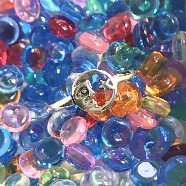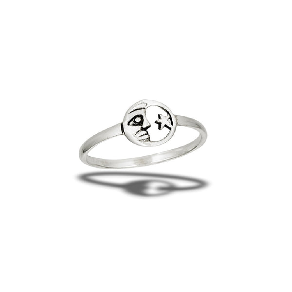 Original price $ 12.00 - Original price $ 12.00Original price$ 12.00$ 12.00 - $ 12.00Current price $ 12.00| /This celestial ring is a crescent moon encircling a star. The moon has oxidized silver detailed face. Sterling Silver. Available in whole sizes 4-...