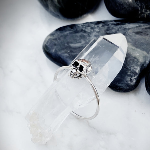 Original price $ 12.00 - Original price $ 12.00Original price$ 12.00$ 12.00 - $ 12.00Current price $ 12.00| /This ring features a dainty band with a detailed skull on top. Available in whole sizes 4-9. Sterling silver. Skull is 1/4" long. Pairs perfectly ...