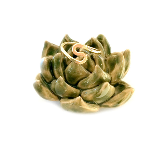 Original price $ 20.00 - Original price $ 20.00Original price$ 20.00$ 20.00 - $ 20.00Current price $ 20.00| /This sturdy ring is contoured in to an s-shaped curl and is lightly hammered. Whole sizes 4-11 available. 14kt gold filled. Handmade in the USA! 1/...