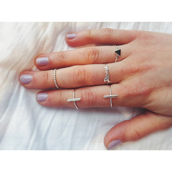 Original price $ 12.00 - Original price $ 12.00Original price$ 12.00$ 12.00 - $ 12.00Current price $ 12.00| /Classic ring with a sideways cross design. Available in whole sizes 4-8. Sterling silver. 3/8" wide. Stack with other rings, or wear this one on it...