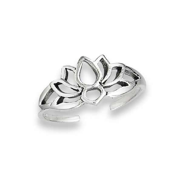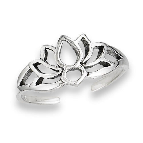 Original price $ 10.00 - Original price $ 10.00Original price$ 10.00$ 10.00 - $ 10.00Current price $ 10.00| /Adjustable toe ring has a cutout of a lotus blossom in the center. Easily adjustable to fit most by gently squeezing together. Sterling silver. 3/...