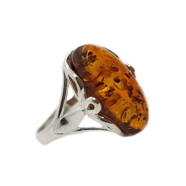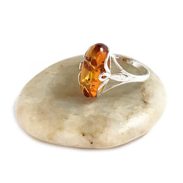 Original price $ 22.00 - Original price $ 22.00Original price$ 22.00$ 22.00 - $ 22.00Current price $ 22.00| /This ring features a long oval of cognac colored amber set in a sterling silver setting with silver loop detail on the shank of the ring. Genuine B...