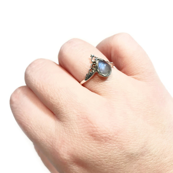 Original price $ 12.00 - Original price $ 12.00Original price$ 12.00$ 12.00 - $ 12.00Current price $ 12.00| /This celestial ring is a crescent moon encircling a star. The moon has oxidized silver detailed face. Sterling Silver. Available in whole sizes 4-...