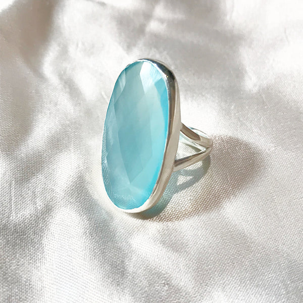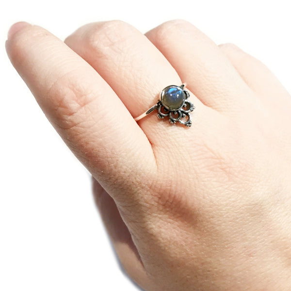Original price $ 24.00 - Original price $ 24.00Original price$ 24.00$ 24.00 - $ 24.00Current price $ 24.00| /This dainty ring is a dome of blue opal bezel-set into a handcrafted sterling silver band. Perfect for stacking! Whole sizes 5-11 available. Handm...