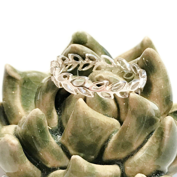 Original price $ 12.95 - Original price $ 12.95Original price$ 12.95$ 12.95 - $ 12.95Current price $ 12.95| /This ring is a row of graceful cutout leaves encircled like a vine around the finger. Available in whole sizes 6-10. Sterling silver. 3/16" (4mm) w...