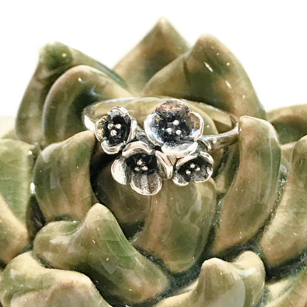 Original price $ 18.00 - Original price $ 18.00Original price$ 18.00$ 18.00 - $ 18.00Current price $ 18.00| /This ring is a sweet cluster of four blooming flowers, with oxidization to provide beautiful detail. Available in whole sizes 6-9. Sterling silver....