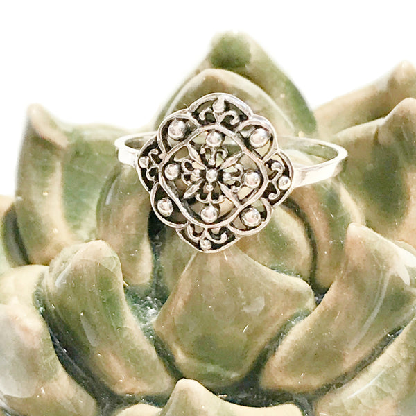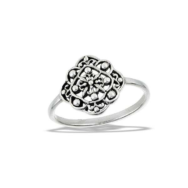 Original price $ 14.00 - Original price $ 14.00Original price$ 14.00$ 14.00 - $ 14.00Current price $ 14.00| /This antique-inspired ring has an ornate filigree flower design with silver beads and swirls throughout. Whole sizes 5-9 available. Sterling silver...