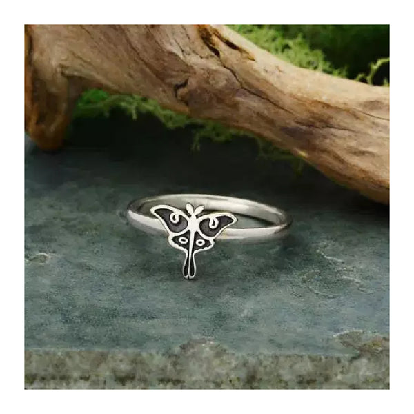 Original price $ 20.00 - Original price $ 20.00Original price$ 20.00$ 20.00 - $ 20.00Current price $ 20.00| /A small luna moth with oxidized details rest on a slender band. Sterling silver. Available in whole sizes 5-9. Measures 1/4" across widest point. P...