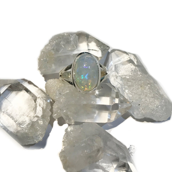 Original price $ 24.00 - Original price $ 24.00Original price$ 24.00$ 24.00 - $ 24.00Current price $ 24.00| /This dainty ring is a dome of white opal bezel-set into a handcrafted sterling silver. Perfect for stacking! Whole sizes 5-11 available. Handmade i...
