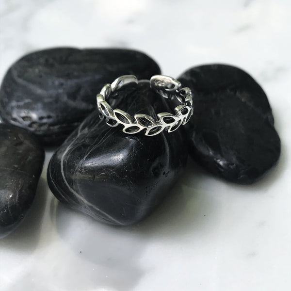 Original price $ 11.00 - Original price $ 11.00Original price$ 11.00$ 11.00 - $ 11.00Current price $ 11.00| /This toe ring is a row graceful alternating leaves. Adjust to wear by gently opening or closing around toe. Sterling silver. 3/16 (4mm) wide. Toe r...