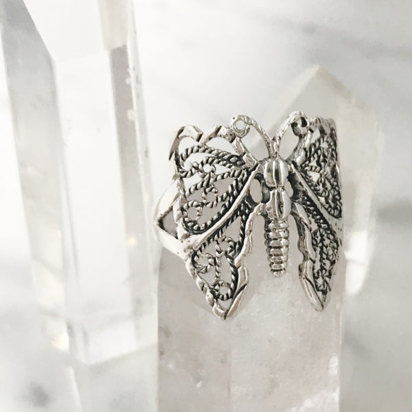 Original price $ 24.00 - Original price $ 24.00Original price$ 24.00$ 24.00 - $ 24.00Current price $ 24.00| /This statement ring is a beautiful butterfly crafted in detail with swirling silver filigree. Sterling silver. Available in whole sizes 7-10. Measu...