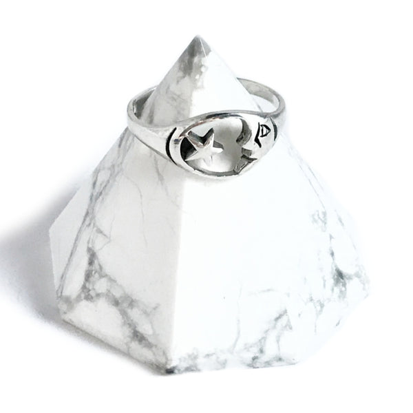 Original price $ 14.00 - Original price $ 14.00Original price$ 14.00$ 14.00 - $ 14.00Current price $ 14.00| /This classic ring has a peaceful crescent moon encircling a star. Sterling silver. Available in whole sizes 7-9. 3/8" at widest point. Pair with ma...