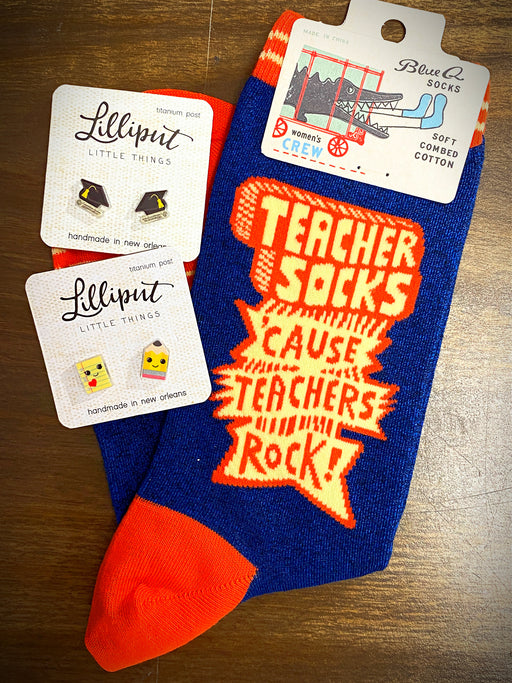 Original price $ 15.00 - Original price $ 15.00Original price$ 15.00$ 15.00 - $ 15.00Current price $ 15.00| /"Teacher Socks, 'Cause Teachers Rock!" Simple, effective & to the point. These navy blue crew socks boldly declare the truth in vibrant orange....
