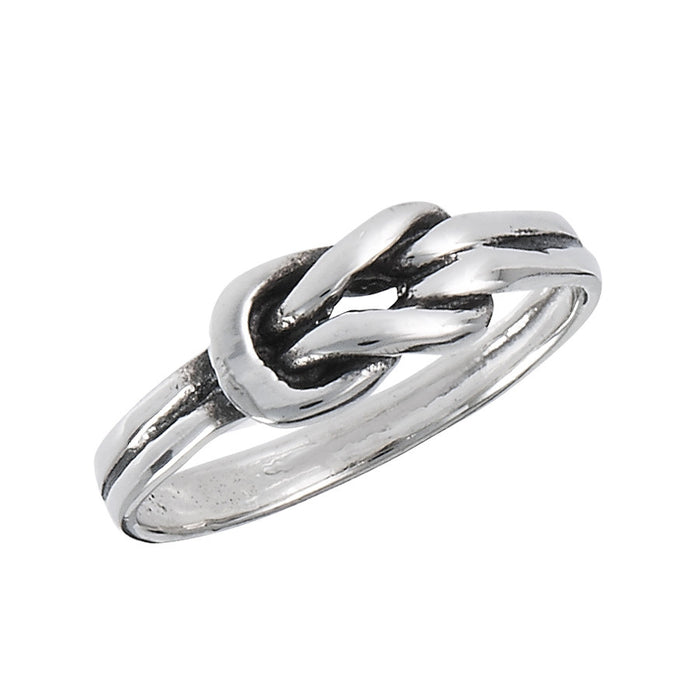 This double band ring with a simple square knot is simple and elegant. Oxidized details provide depth & dimension.