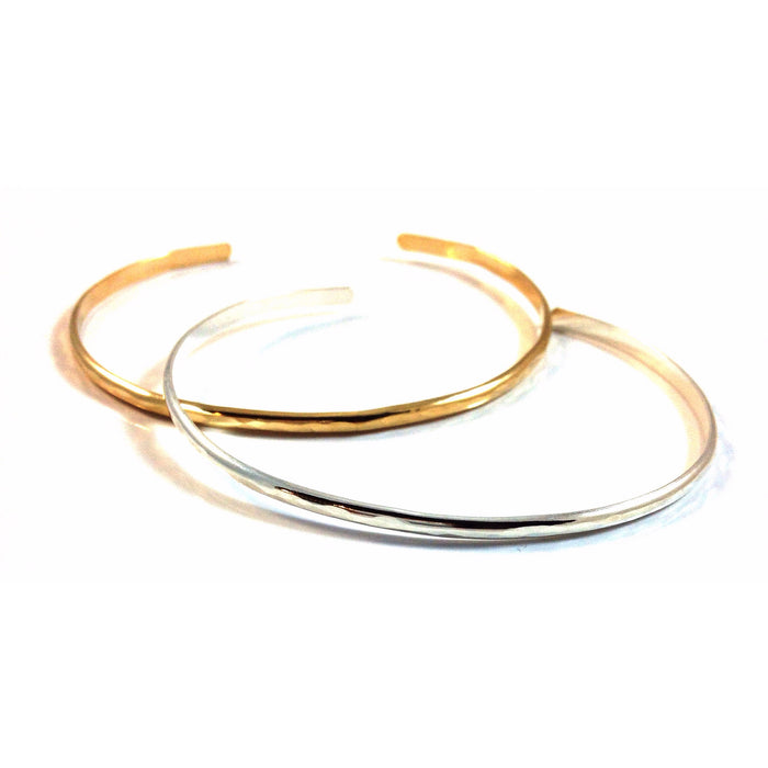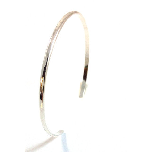 This classic hammered cuff bracelet is slightly adjustable and fits most wrists by gently squeezing to fit.