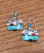These whimsical earrings are retro campers in vintage aqua and pink enamel with black details.