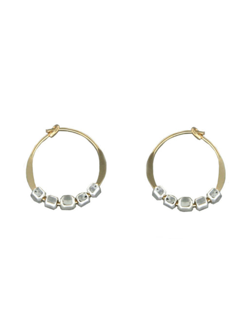 Original price $ 20.00 - Original price $ 20.00Original price$ 20.00$ 20.00 - $ 20.00Current price $ 20.00| /14kt gold filled hoops are accented with a row of sterling silver beads along the bottom. Easy hook and eye clasp. Handmade in the USA! 5/8" long.