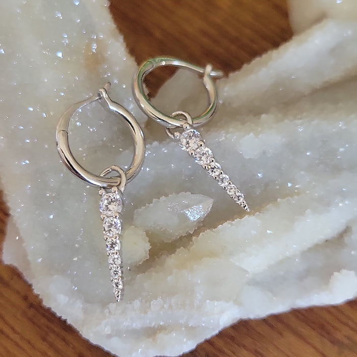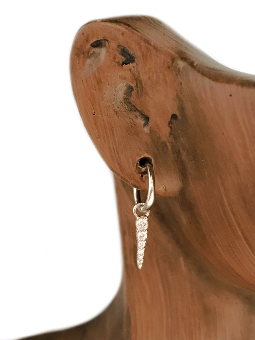 An edgy take on a classic style, these pincatch hoops have a small dangle of a row of cubic zirconia crystals in graduated sizes from largest to smallest.