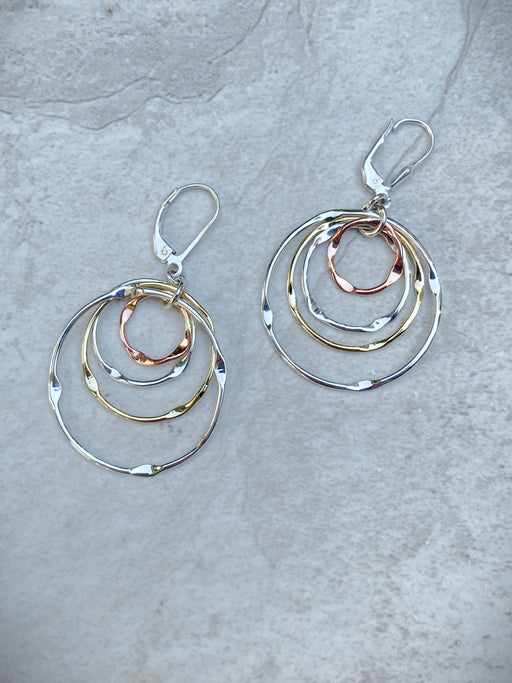 Original price $ 64.00 - Original price $ 64.00Original price$ 64.00$ 64.00 - $ 64.00Current price $ 64.00| /These bold yet versatile statement earrings are concentric rings in sterling silver, brass and copper, each hammered for light play. Sterling silv...