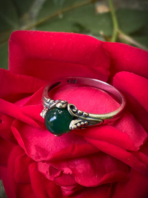 Original price $ 29.00 - Original price $ 29.00Original price$ 29.00$ 29.00 - $ 29.00Current price $ 29.00| /This ring features an orb of polished green onyx in a decorative raised setting, with the gem surrounded by ornate silver details. Available in who...