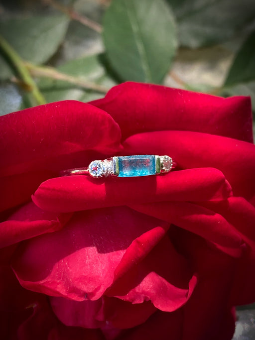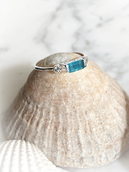 Original price $ 30.00 - Original price $ 30.00Original price$ 30.00$ 30.00 - $ 30.00Current price $ 30.00| /This elegant ring features a baguette bar of bright aqua blue neon apatite, flanked on each side by a small sparkly blue topaz. The raised setting ...