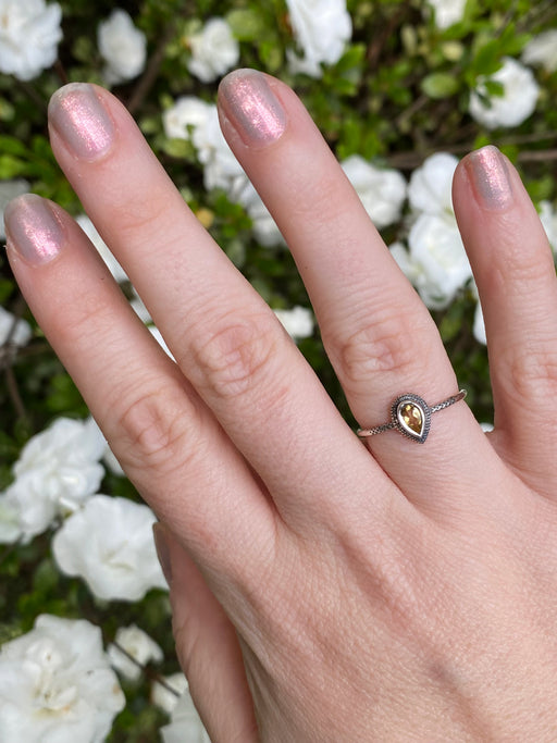 Original price $ 24.00 - Original price $ 24.00Original price$ 24.00$ 24.00 - $ 24.00Current price $ 24.00| /This petite ring features a pear cut golden yellow citrine gemstone bezel-set in a decorative setting with a dimpled texture finish. Available in w...